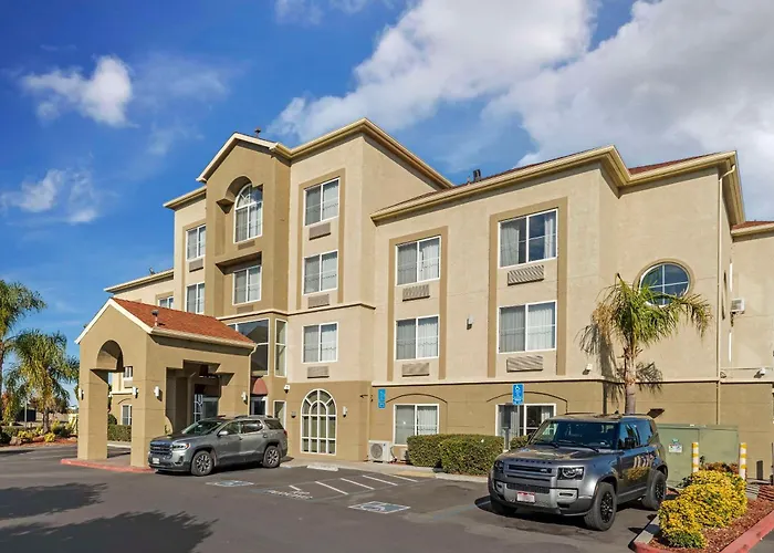 The 3-star Comfort Inn Lathrop Stockton Airport is located nearly 20 minutes' walk from Manuel Valverde Park, offering 41 rooms along with a sauna, spa therapy, and barbecue grills. Featuring a heated swimming pool, this Lathrop inn is a few moments from Highlight Church of God and Christ.